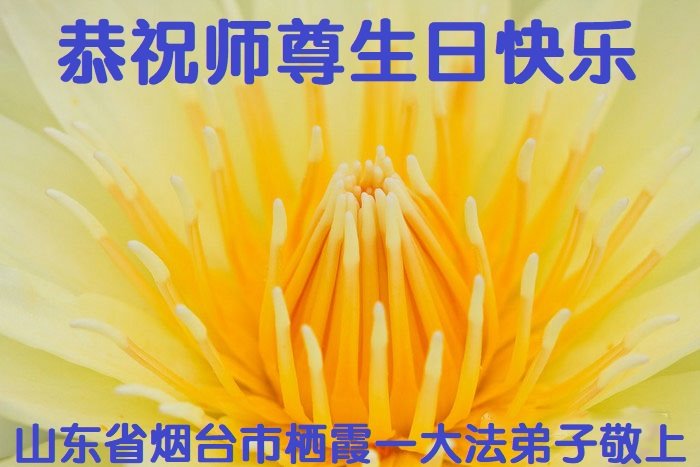 感谢师尊的慈悲救度!弟子要按照真善忍修炼,纯纯净净扎实精進,尽最大力量做好三件事,不辜负师尊的慈悲苦度。 山东省烟台市栖霞一大法弟子恭祝慈悲伟大的师尊生日快乐!