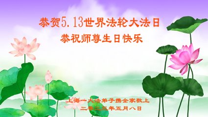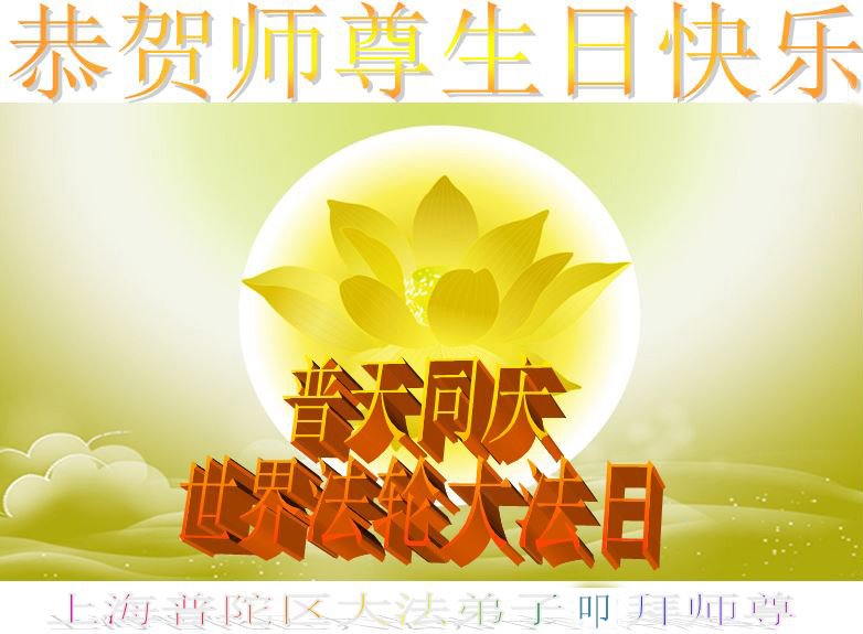 谢谢师父慈悲救度和保护我们! 上海市普陀区大法弟子敬贺世界法轮大法日!恭祝慈悲伟大的师尊生日快乐!