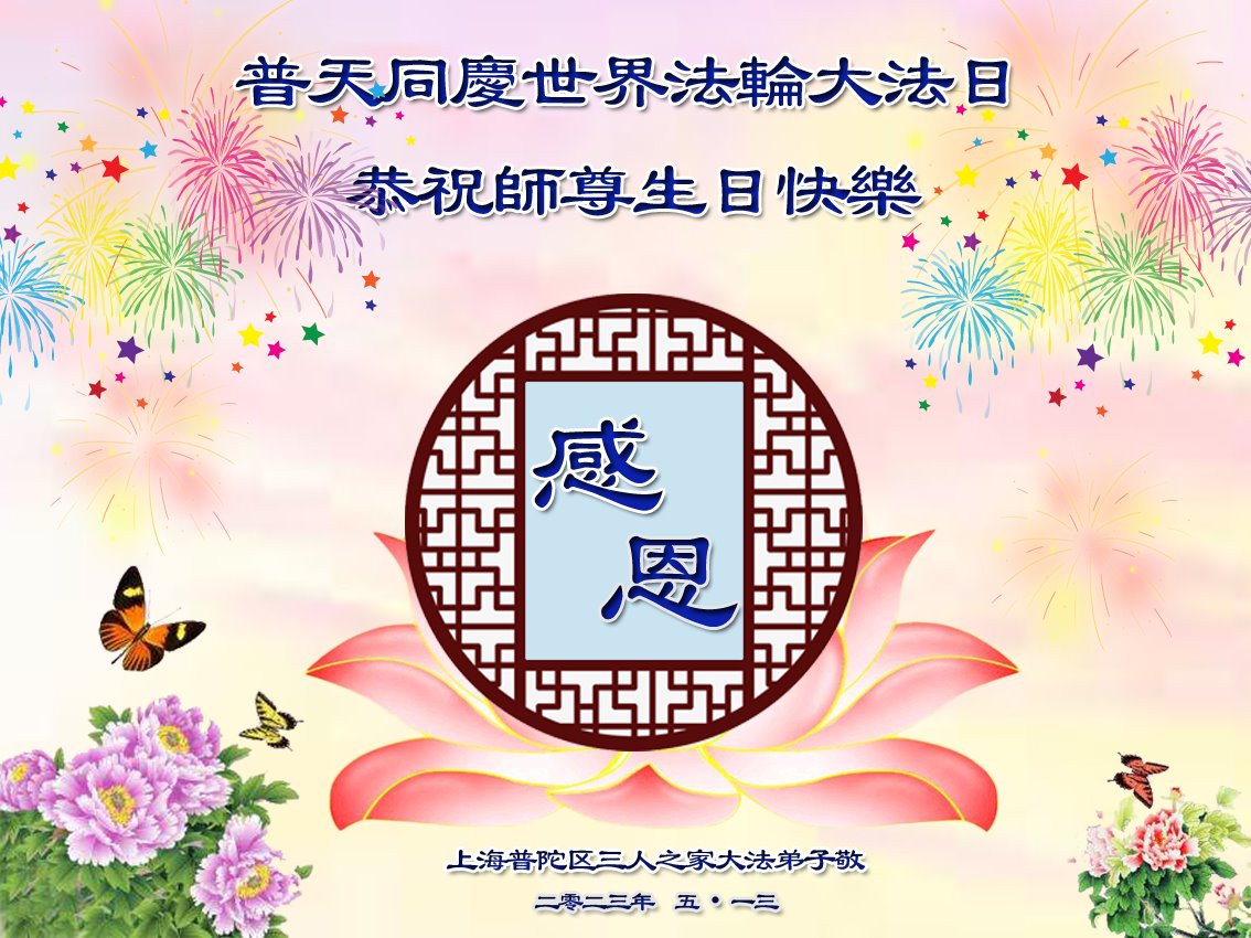 【明慧网二零二三年五月十二日】 上海普陀区三人之家大法弟子恭祝师尊生日快乐!