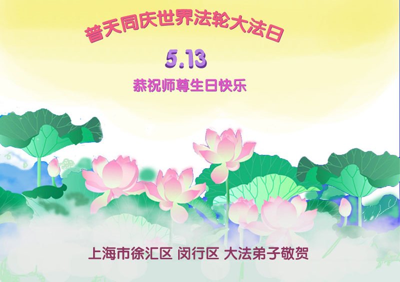 上海市徐汇区闵行区大法弟子恭祝师尊生日快乐!普天同庆世界法轮大法日!