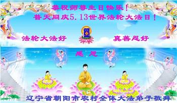 辽宁省朝阳市农村全体大法弟子恭祝慈悲伟大的师尊生日快乐!同庆同贺5.13世界法轮大法日!