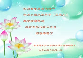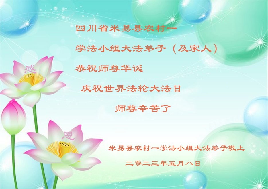 【明慧网二零二三年五月十二日】 四川省达州市开江县乡村大法弟子祝贺世界法轮大法日!