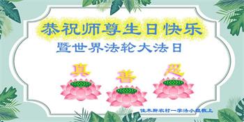 山东烟台一乡镇学法小组大法弟子敬贺法轮大法日!恭贺师尊华诞!