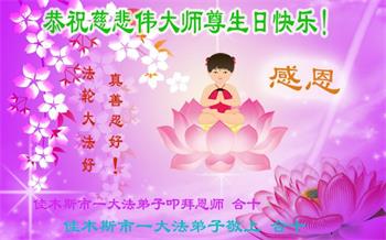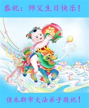 黑龙江省佳木斯一家大法弟子恭祝师父生日快乐!