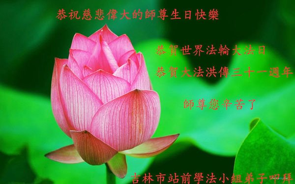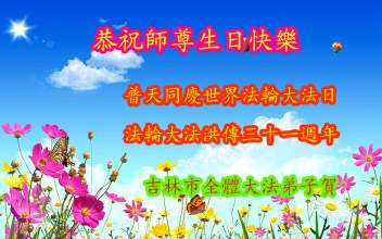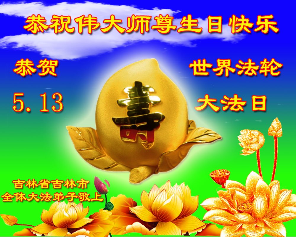 吉林市全体大法弟子恭祝慈悲伟大的师尊生日快乐!同庆世界法轮大法日!