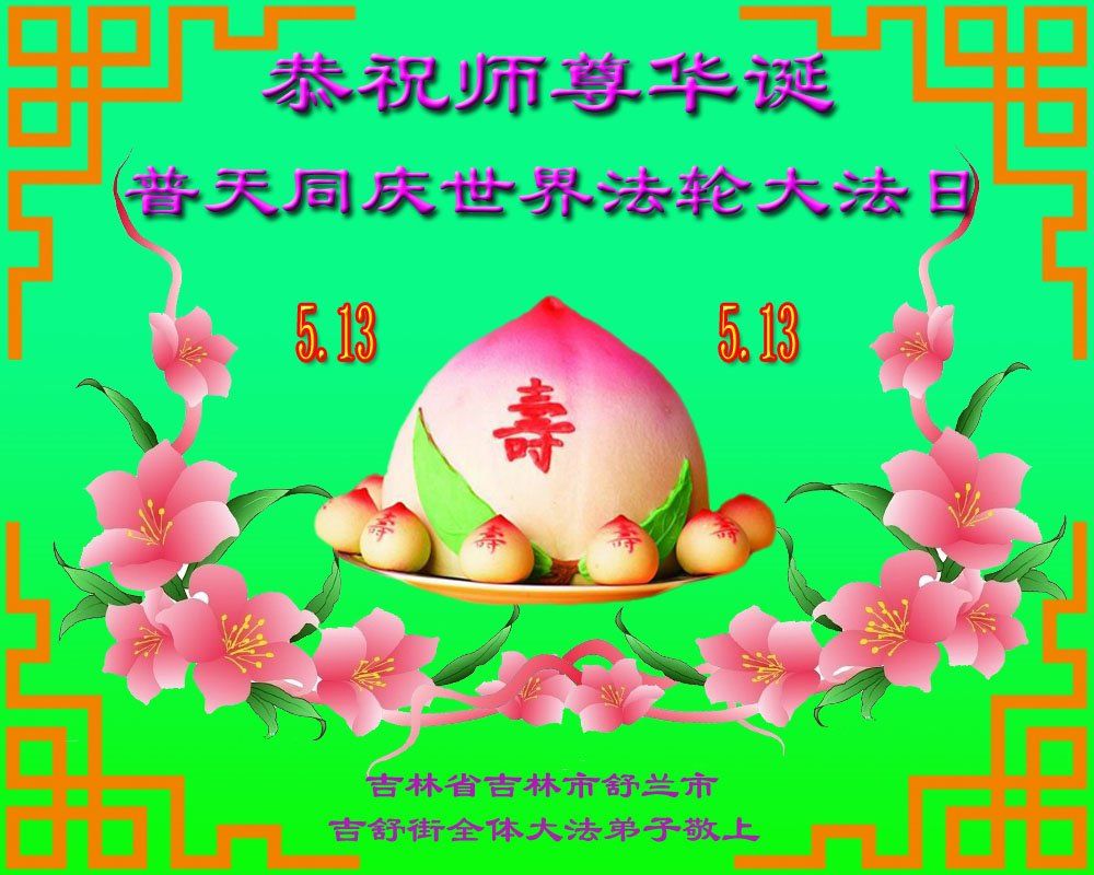 吉林省吉林市舒兰市吉舒街全体大法弟子恭祝师尊生日快乐!普天同庆世界法轮大法日!