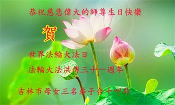 吉林市母女三人大法弟子恭祝师尊生日快乐!
