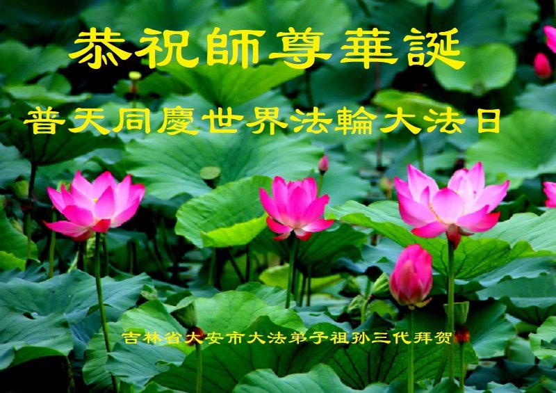 弟子无法用语言来感恩师尊慈悲救度!弟子无以为报,唯有做好三件事,跟上师父正法進程。 吉林省白城市大安市大法弟子祖孙三代恭祝师尊华诞!
