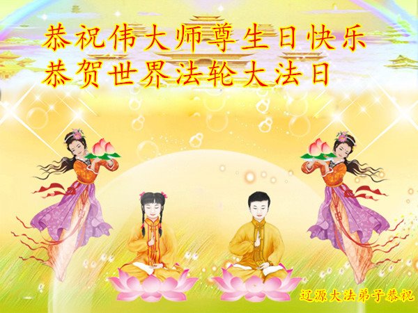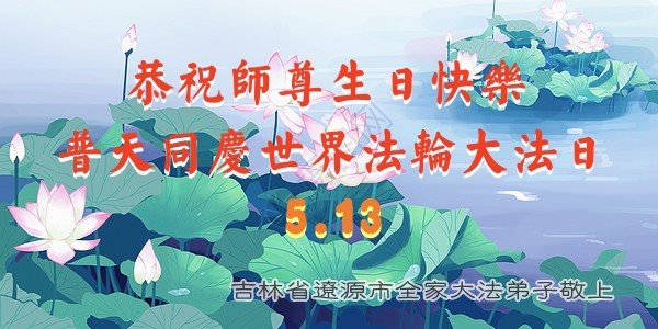 吉林省辽源市大法弟子恭祝慈悲伟大师尊生日快乐!恭贺世界法轮大法日!
