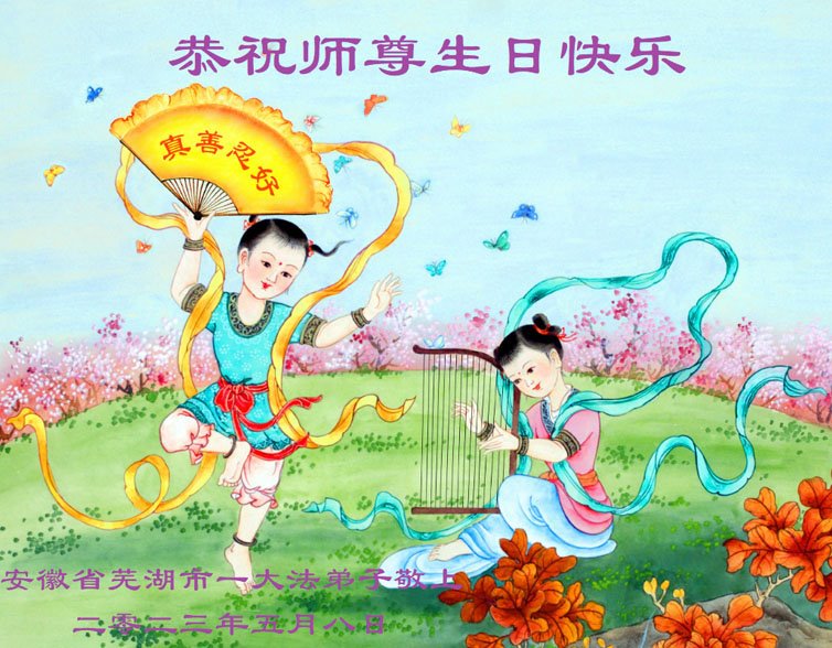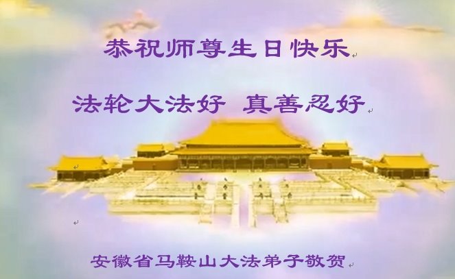 弟子感恩师尊慈悲救度!师尊无量的慈悲弟子无以为报,弟子一定要严格要求自己,听师父的话,精進实修,赶上正法進程。完成大法弟子救度众生的历史使命,圆满随师还! 安徽合肥市一大法弟子恭祝慈悲伟大的师尊生日快乐!恭贺世界法轮大法日!
