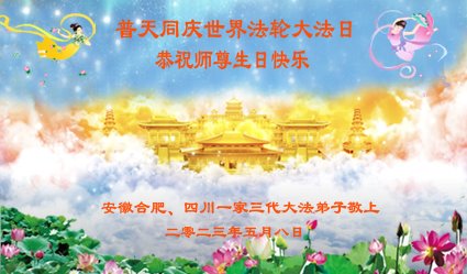 安徽合肥、四川一家三代大法弟子庆贺世界法轮大法日!