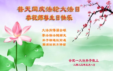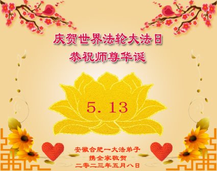 安徽合肥一大法弟子庆贺世界法轮大法日!恭祝师尊生日快乐!