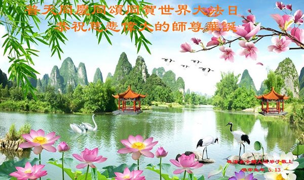 在这普天同庆的日子里,感恩师父慈悲救度!为弟子付出的一切!谢谢师父!您辛苦了! 广东省河源市一学法小组大法弟子敬贺法轮大法日!