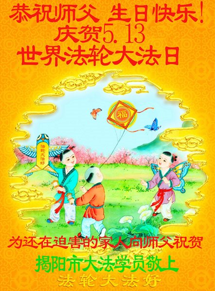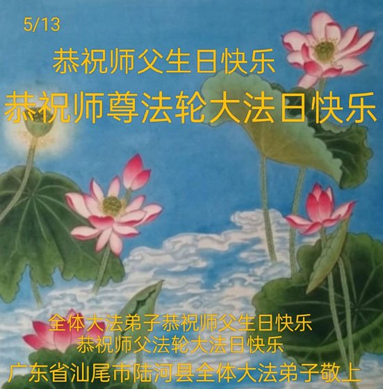 广东省揭阳被迫害大法弟子恭祝师父生日快乐!庆贺世界法轮大法日!