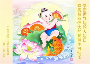 广东省广州市五位大法弟子恭贺世界法轮大法日!