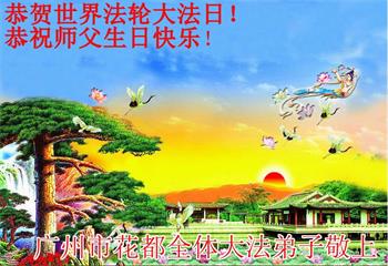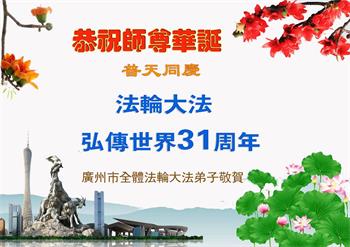 感恩师尊慈悲救度!弟子合十 广东省广州大法弟子恭贺世界法轮大法日暨师尊华诞!
