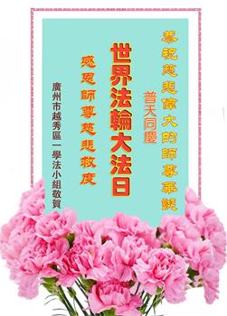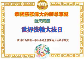 广东省广州一家庭学法小组大法弟子恭贺世界法轮大法日!