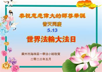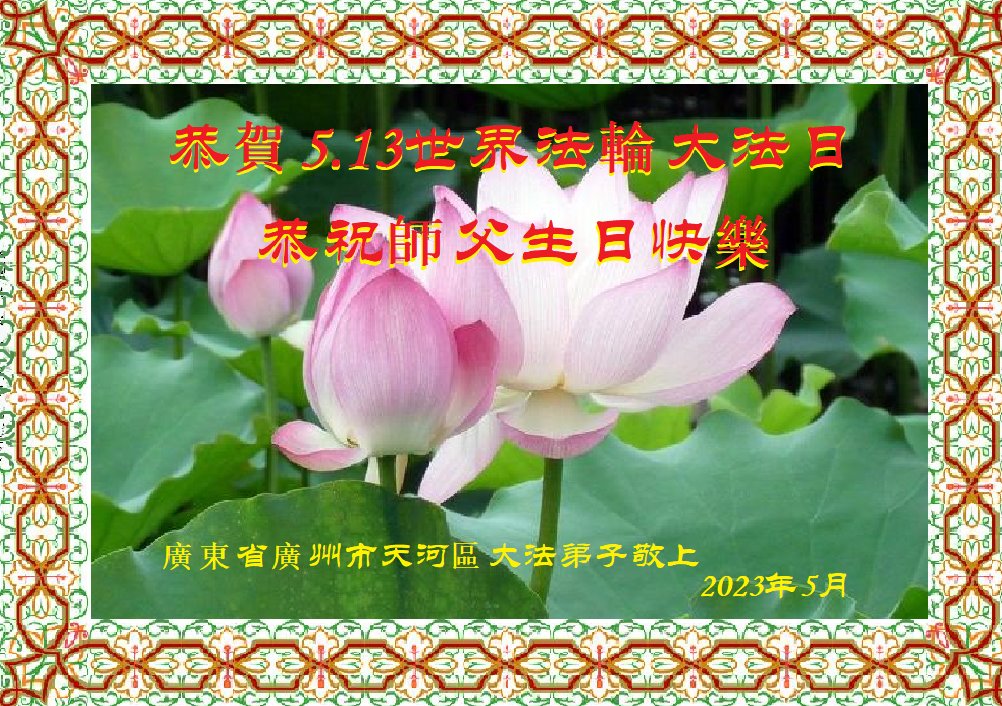 广东省广州市天河区大法弟子恭贺5.13世界法轮大法日!恭祝师父生日快乐!