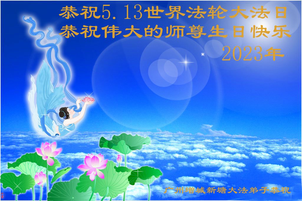 恭祝5.13世界法轮大法日!恭祝伟大的师尊生日快乐! 广州增城新塘大法弟子恭祝 广东省广州市全体法轮大法弟子恭祝师尊华诞!普天同庆法轮大法弘传世界31周年!