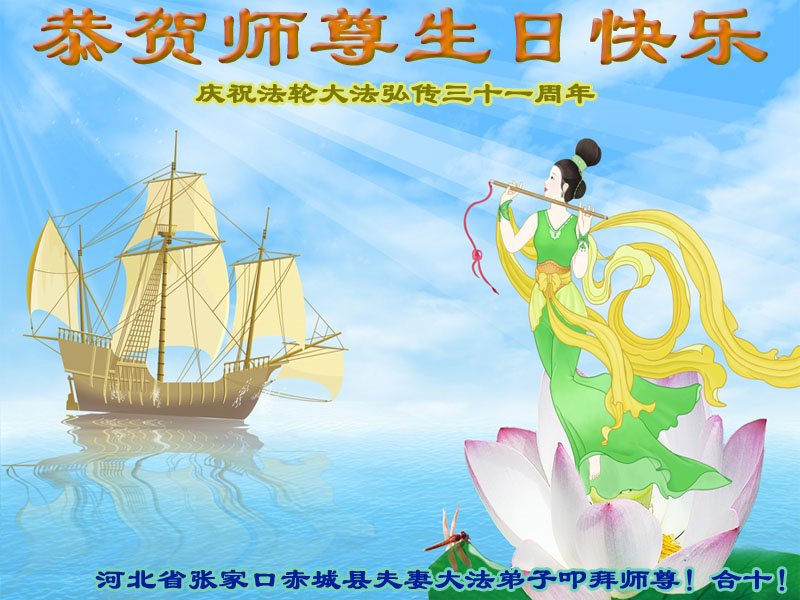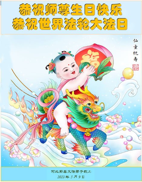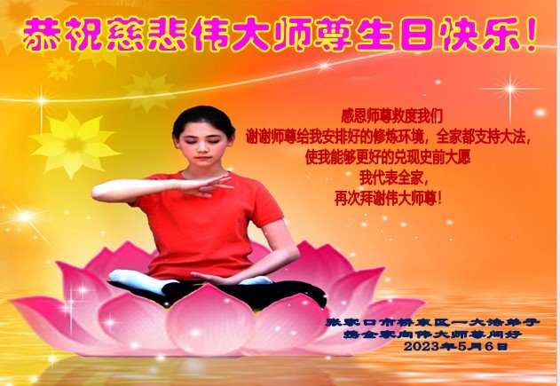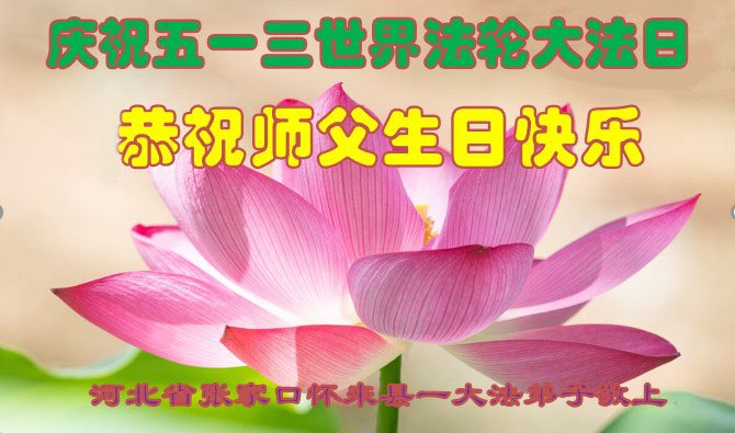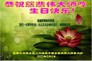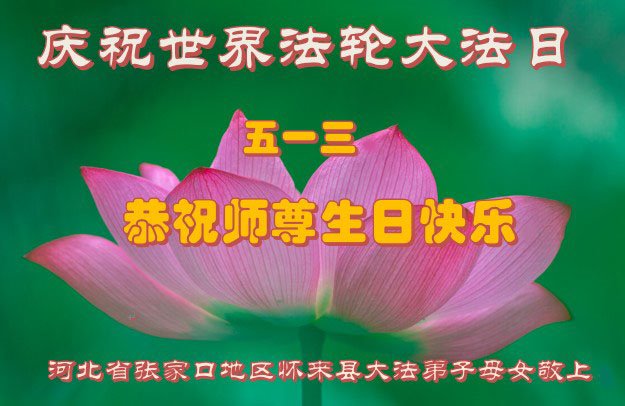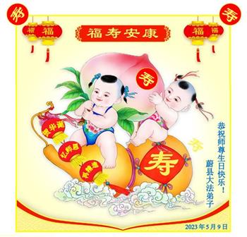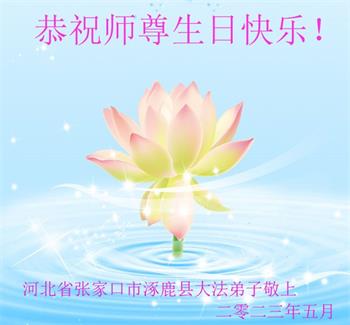 【明慧网二零二三年五月十二日】 河北省张家口市涿鹿县一大法弟子恭祝慈悲伟大的师尊生日快乐!