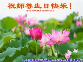河北省张家口市蔚县一大法弟子恭祝师父生日快乐!
