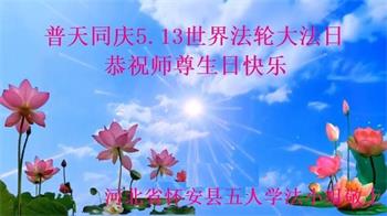 河北省张家口怀来县一大法弟子庆祝世界法轮大法日!恭祝师尊生日快乐!