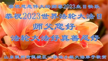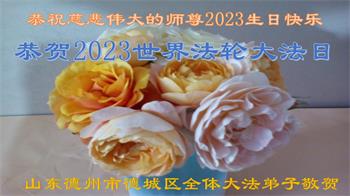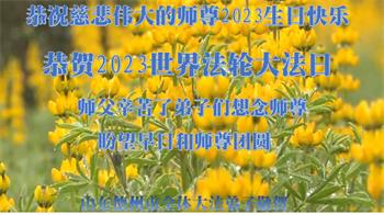 世界法轮大法日暨师父的生日快到了,弟子在这里祝慈悲伟大的师父生日快乐! 弟子想念恩师。在最后的时间里,弟子要精進实修,不辜负师父的慈悲苦度,跟师父圆满回家! 山东省平原县大法弟子敬上 2023年5月7日 山东省德州市宁津县全体大法弟子恭祝师尊生日快乐!