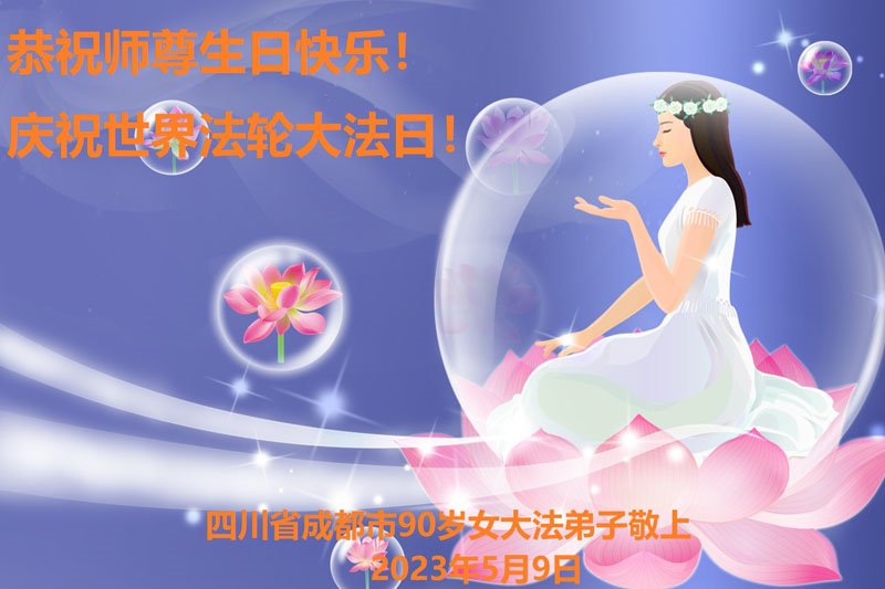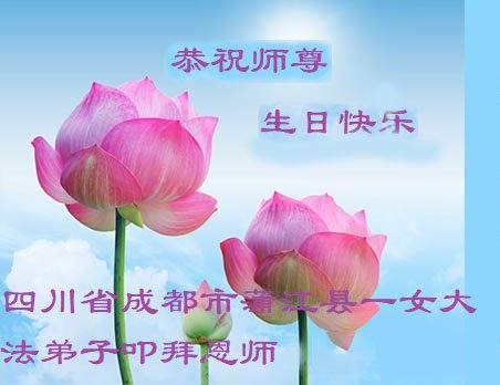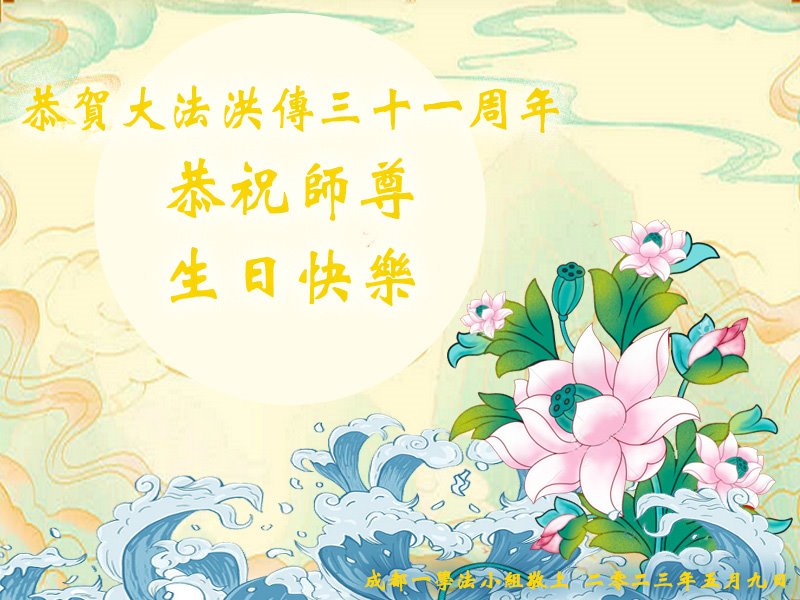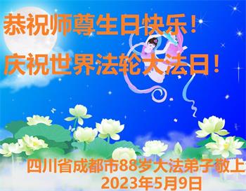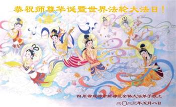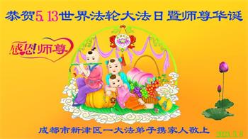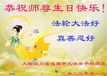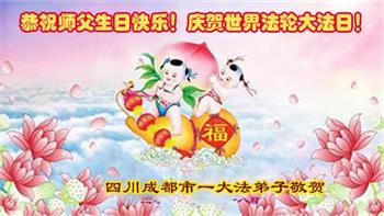 四川成都市一大法弟子恭贺师尊华诞暨世界法轮大法日!