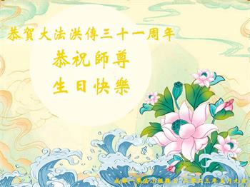 尊敬的师尊您辛苦了!在这三十一年的传法过程中,不知师尊您为所有弟子付出多少心血,吃了多少苦,在您无微不至的精心保护下,才能使弟子在这二十多年的魔难中走到今天。特别是师尊您对我们全家人的保护,尤其是对我大儿子和我丈夫的精心保护,才能使他们在大魔难中神迹般的活了过来,弟子用尽人间的所有语言都无法表达对师尊的感恩!弟子唯有多学法、学好法,精進、再精進,在最后的最后多救人,跟师尊回家!谢谢师尊! 四川省成都市俩大法弟子恭贺法轮大法日!恭祝慈悲伟大的师尊生日快乐!