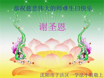 辽宁省沈阳市大东区一学法小组大法弟子恭祝慈悲伟大的师尊生日快乐!