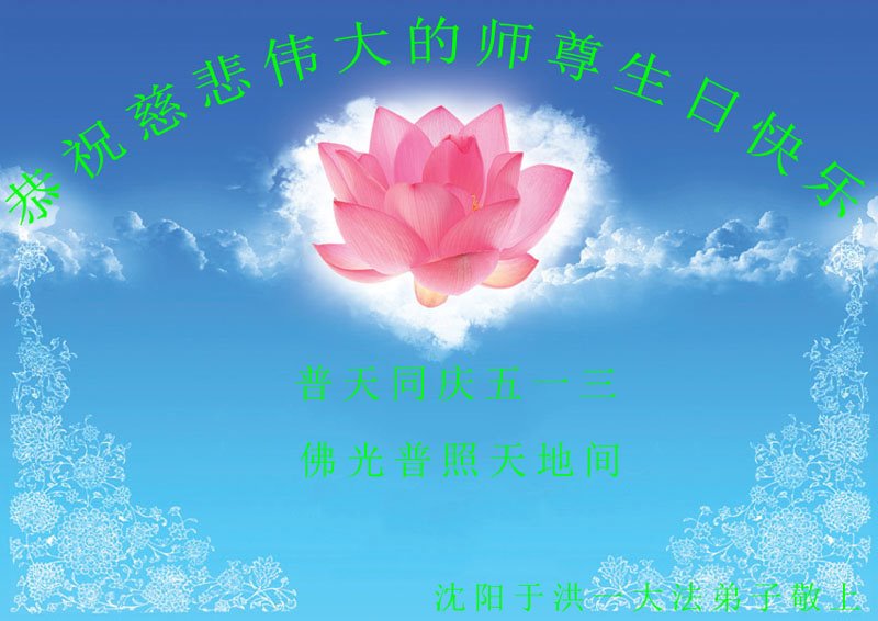 【明慧网二零二三年五月十二日】 辽宁省沈阳大法弟子恭祝师尊生日快乐!
