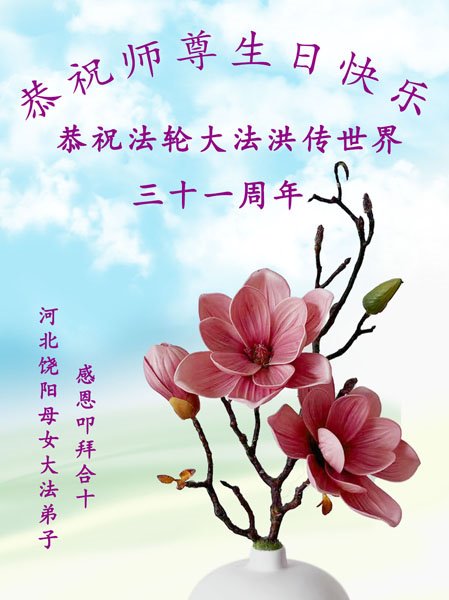 谢谢师父,师父辛苦了。 河北省衡水市饶阳县母女大法弟子恭祝师父生日快乐!恭祝法轮大法洪传三十一周年!