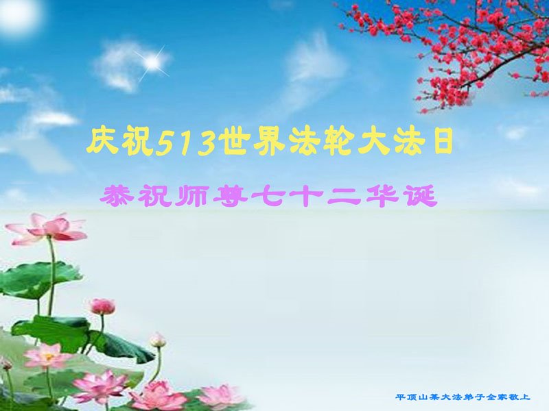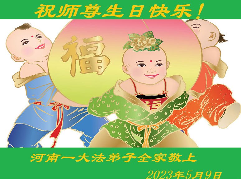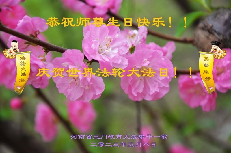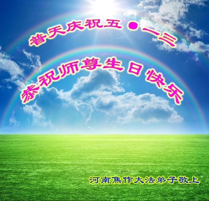 在五·一三来临之际,也是法轮大法弘传31周年之时,衷心祝慈悲伟大的师尊生日快乐!回想这些年来弟子走过的修炼路,每一步都在伟大师尊的看护下走过来的。在魔难中有师尊的慈悲点悟;在摔倒中有师尊的洪大慈悲鼓励着;艰难的走过了每一关、每一难。在师尊的慈悲加持下,弟子精進实修,时时都感到师父就在弟子身边保护着我们。唯有修好自己,兑现誓约,报师恩。 河南省三门峡市大法弟子一家恭祝师尊生日快乐!