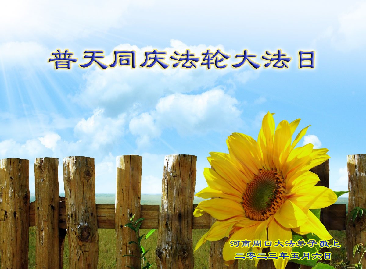 师尊辛苦了!感恩师尊的无上恩典,恭贺大法弘传三十一周年,弟子只有精進、再精進,不辜负师尊圣恩。排除万难,多救人、让师尊少一份操劳,多一份欣慰。盼师尊早日回中原。合十 河南省周口市大法弟子恭祝师父生日快乐!