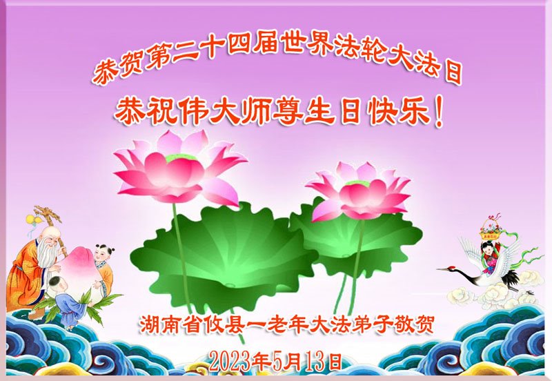 湖南省株洲市攸县一老年大法弟子恭贺第二十四届世界法轮大法日!