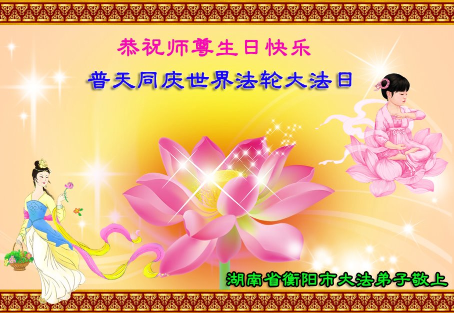 恭祝慈悲伟大的师尊华诞!恭贺世界法轮大法日! 湖南省衡阳市大法弟子恭祝师尊生日快乐!