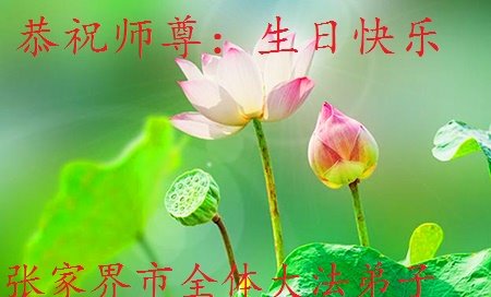 湖南省张家界市全体大法弟子恭祝慈悲伟大的师尊生日快乐!