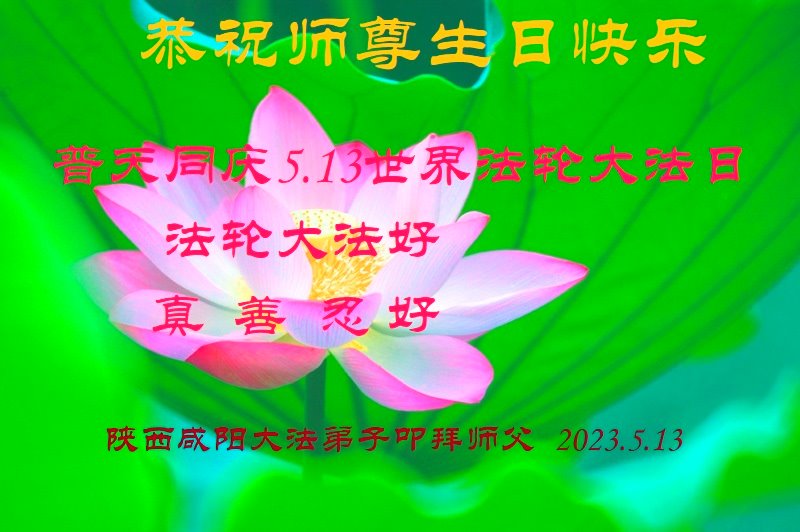 恭贺世界法轮大法日! 陕西咸阳大法弟子恭祝慈悲伟大的师尊生日快乐!