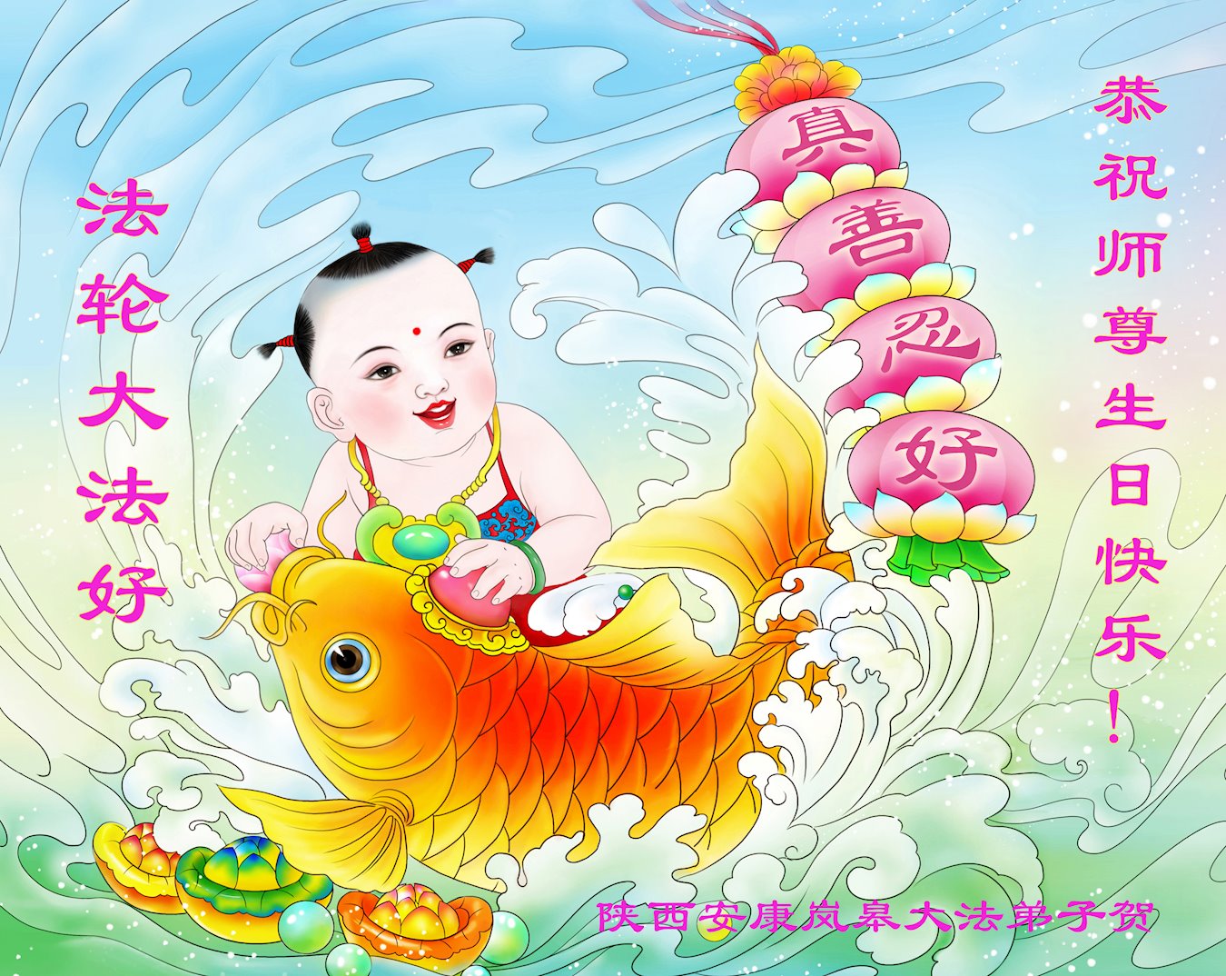 千言万语无法倾诉感恩伟大师尊的慈悲苦度!只有精進再精進以报师恩!叩拜合十 陕西省宝鸡市一学法小组大法弟子恭祝师尊生日快乐!