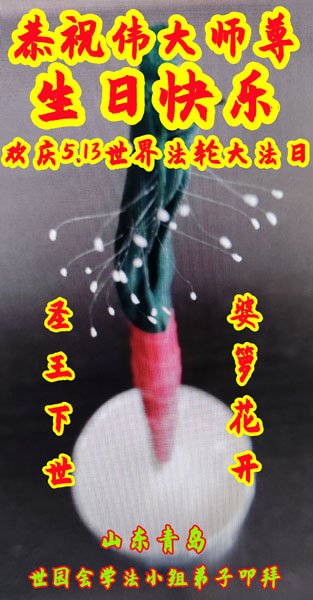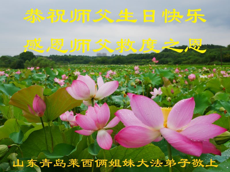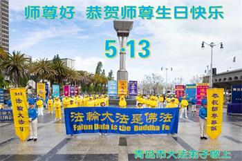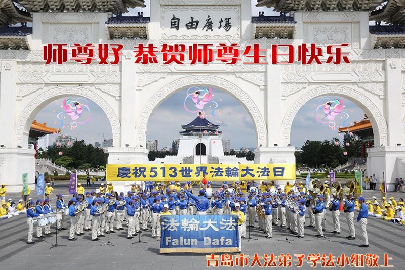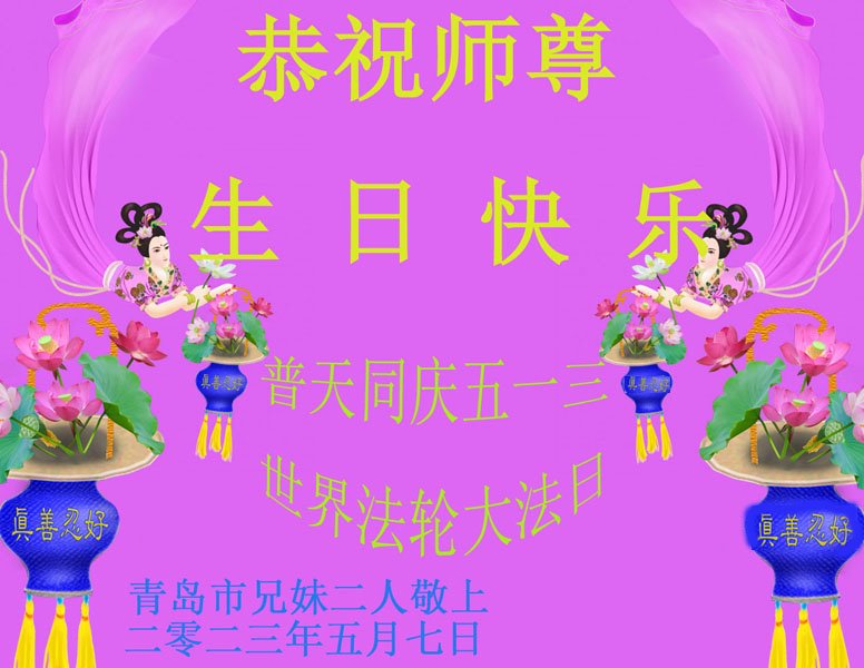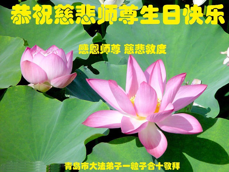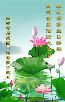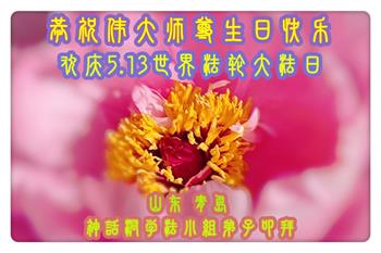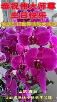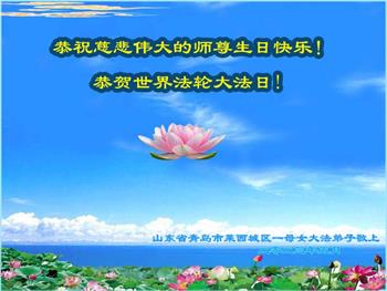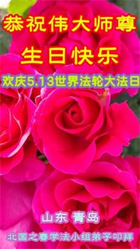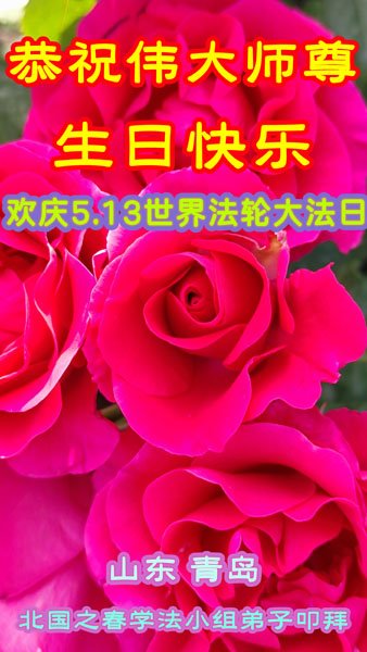山东省青岛大法弟子恭祝师尊生日快乐!普天同庆世界法轮大法日!
