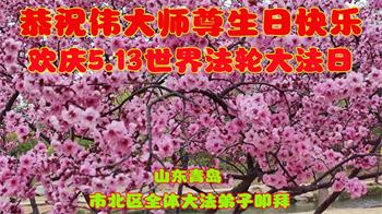 山东省青岛市市北区全体大法弟子恭贺法轮大法日!