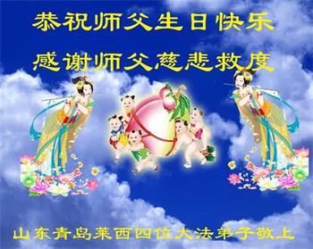 山东青岛莱西市一大法弟子恭祝师父生日暨法轮大法日!