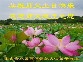 山东青岛莱西市姐妹大法弟子恭贺法轮大法日!恭祝师父生日快乐!