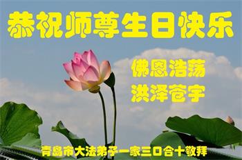 山东省青岛大法弟子一家三口恭祝师尊生日快乐!