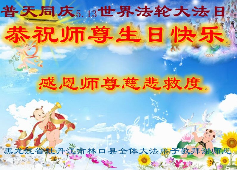 黑龙江省牡丹江市林口县全体大法弟子恭祝慈悲伟大的师尊生日快乐!恭贺世界法轮大法日!