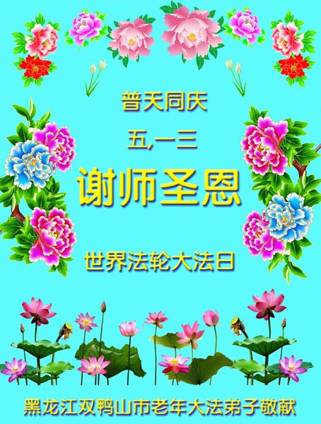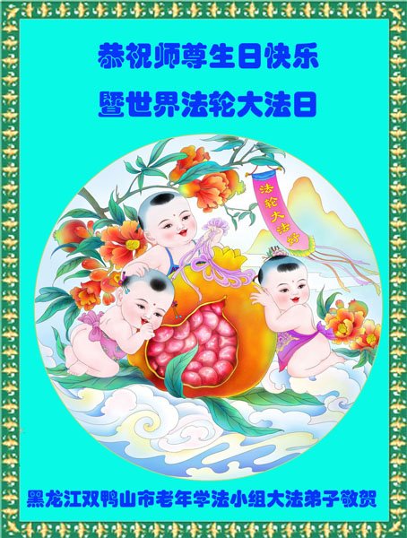 黑龙江双鸭山市老年大法弟子恭祝师尊生日快乐暨世界法轮大法日!
