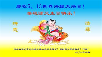 河北省保定大法弟子恭祝师尊生日快乐!同祝世界法轮大法日!