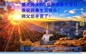 恭贺世界法轮大法日! 盼望师父早日回国。请师父放心,弟子听师父的话,做好三件事,成为合格的正法时期的大法弟子,堂堂正正的和师父团聚。 河北保定市大法弟子恭祝师尊生日快乐!