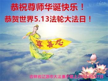恭贺世界法轮大法日! 在五·一三法轮大法日来临之际,弟子心中无比感恩师尊的慈悲苦度!今后在修炼上要更加精進实修,圆满随师还! 吉林省大法弟子恭祝师尊生日快乐!