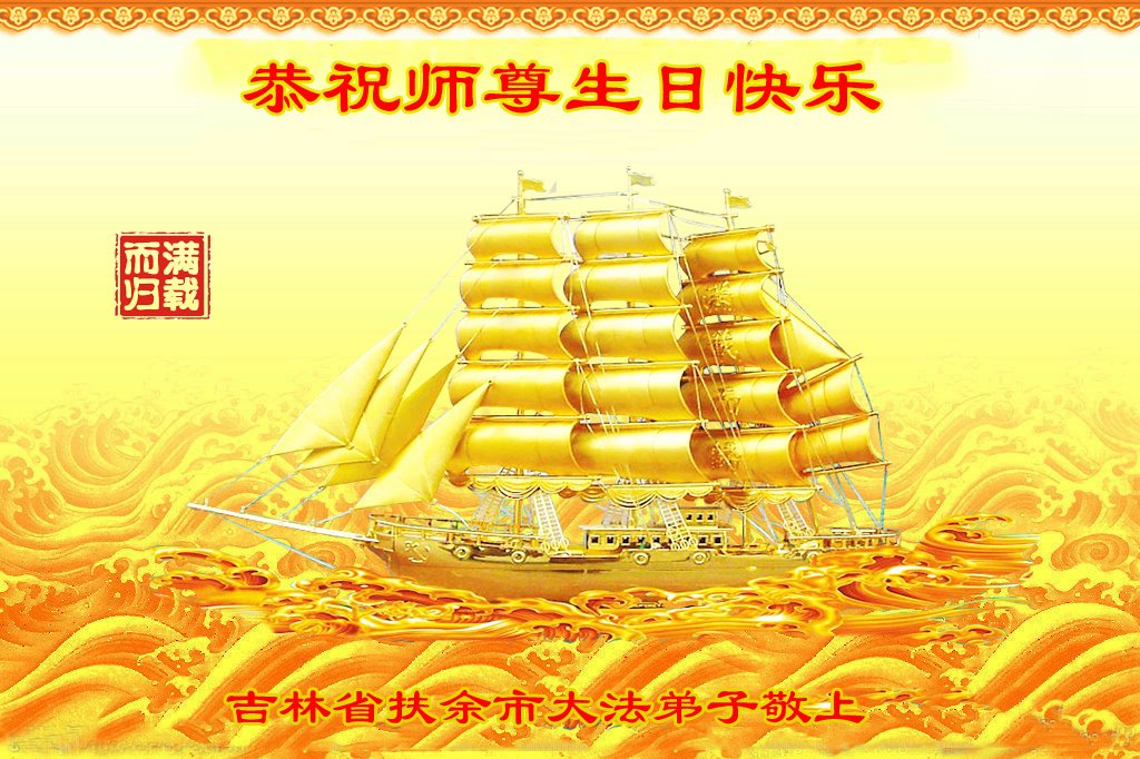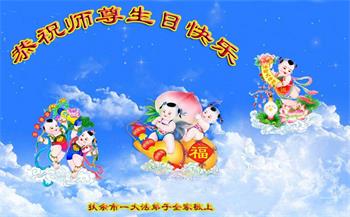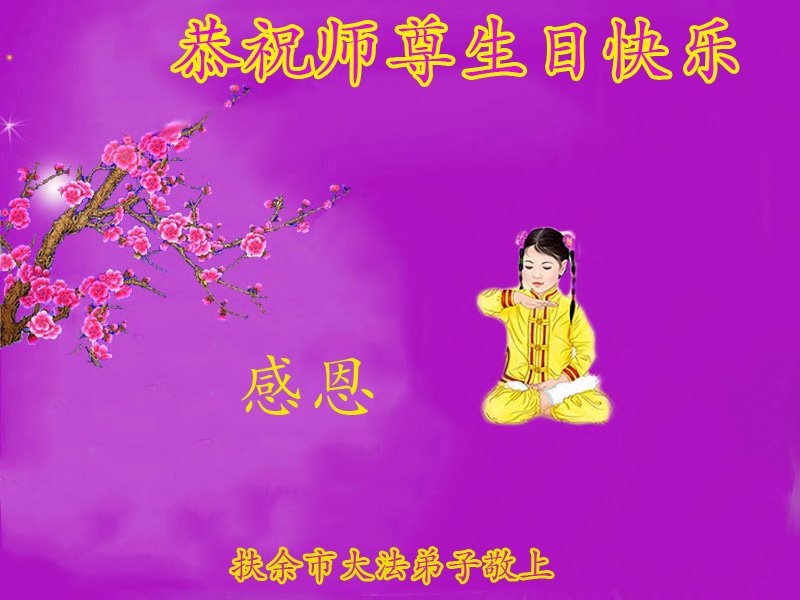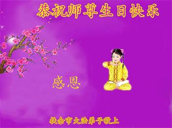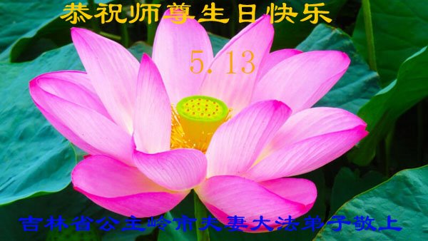 “五·一三”是个神圣而伟大的日子,是幸福的日子。师尊:您为弟子操心了,感谢师尊的佛恩浩荡,感谢师尊的慈悲救度! 弟子在这里给师尊叩头叩拜!谢谢师尊。 吉林省扶余市一大法弟子及全家恭祝师尊生日快乐!